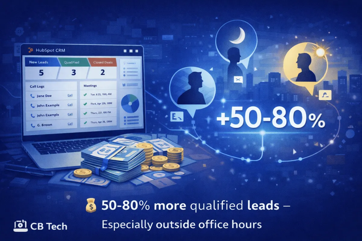 Your AI-powered Virtual Sales Assistant captures enquiries 24/7, qualifies prospects automatically and books meetings into your HubSpot CRM so you only speak to serious buyers ready to move forward.